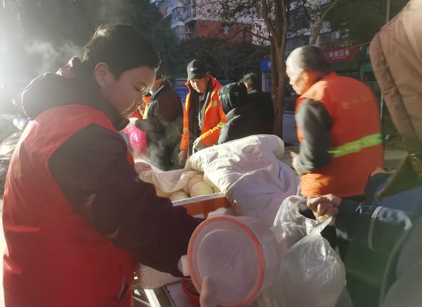 同学们有序地发放了上百份公益爱心早餐。两个馒头、一碗粥、一勺炒白菜,最家常的饭菜,却因为寄托了情感,凝聚了爱心。据悉,贾爱华老师带领同学们参加爱心粥屋公益活动已经坚持两年之久,同学们积极参与,服务大家,奉献社会。