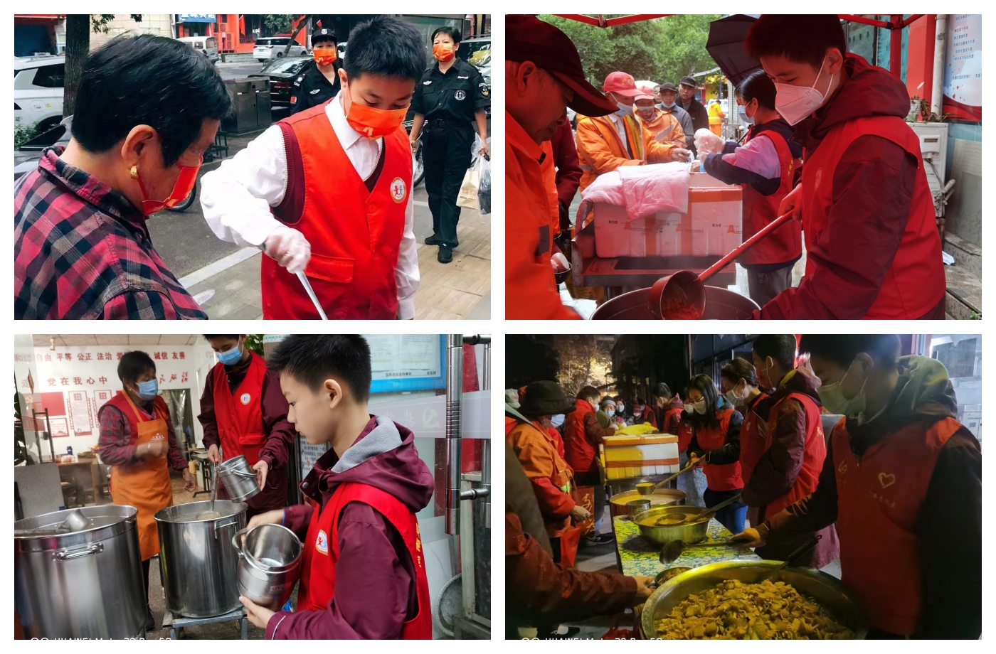 浇花浇根,育人育心,对学生的教育除了学科知识外更重要的是培养学生养成正确的价值观、世界观。活动教育在此发挥着重要作用,通过让学生参与一些社会实践活动,接触到一些社会重要议题,从而提高学生的综合素质以及社会责任意识。为此在每月我会组织学生参加爱心粥屋社会实践活动,为环卫工人奉上一碗热粥。学生们在凌晨四点的寒风中体会到了环卫工人的不易、在洗菜、切菜的流程中实践了劳动教育、在宣誓的过程中增强了社会责任感、在爱心餐的发放中提升了自我价值。