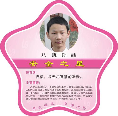 12月份是我校《生命安全》的主题教育月,学校通过交通安全、应急疏散演练、预防校园欺凌、阳光心理、健康人生等主题教育,培养学生的安全意识,经个人申报、班级推荐、学校审核,评选出2020年第四期《安全之星》
