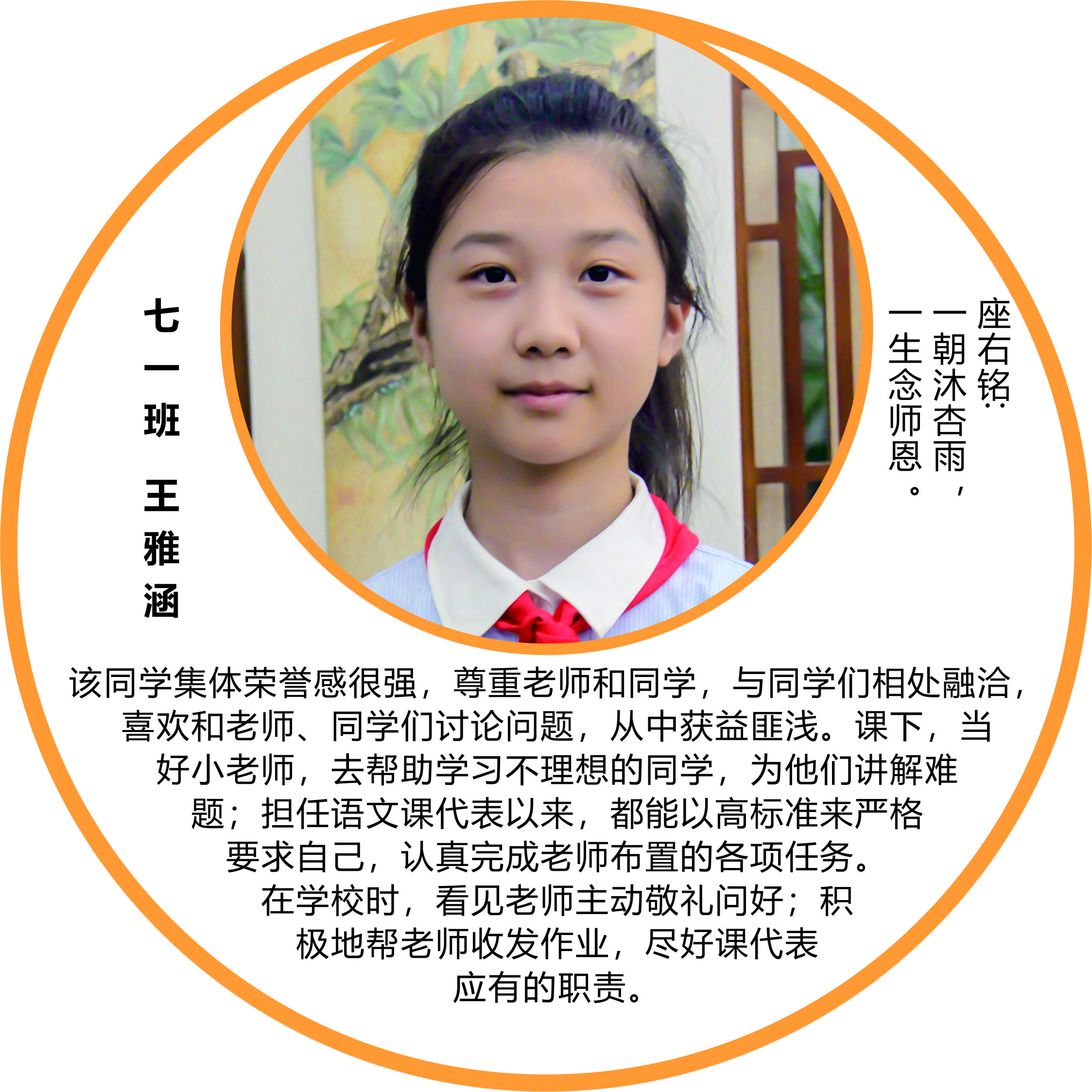 4月是学校感恩月,各班级开展学会感恩、班主任节主题板报、尊敬师长、遵守纪律、主动问好、心存感恩。活动中你们将感恩活动落实到日常生活中。经个人申报,班级推荐,学校审核,评选出本期《文明之星》。