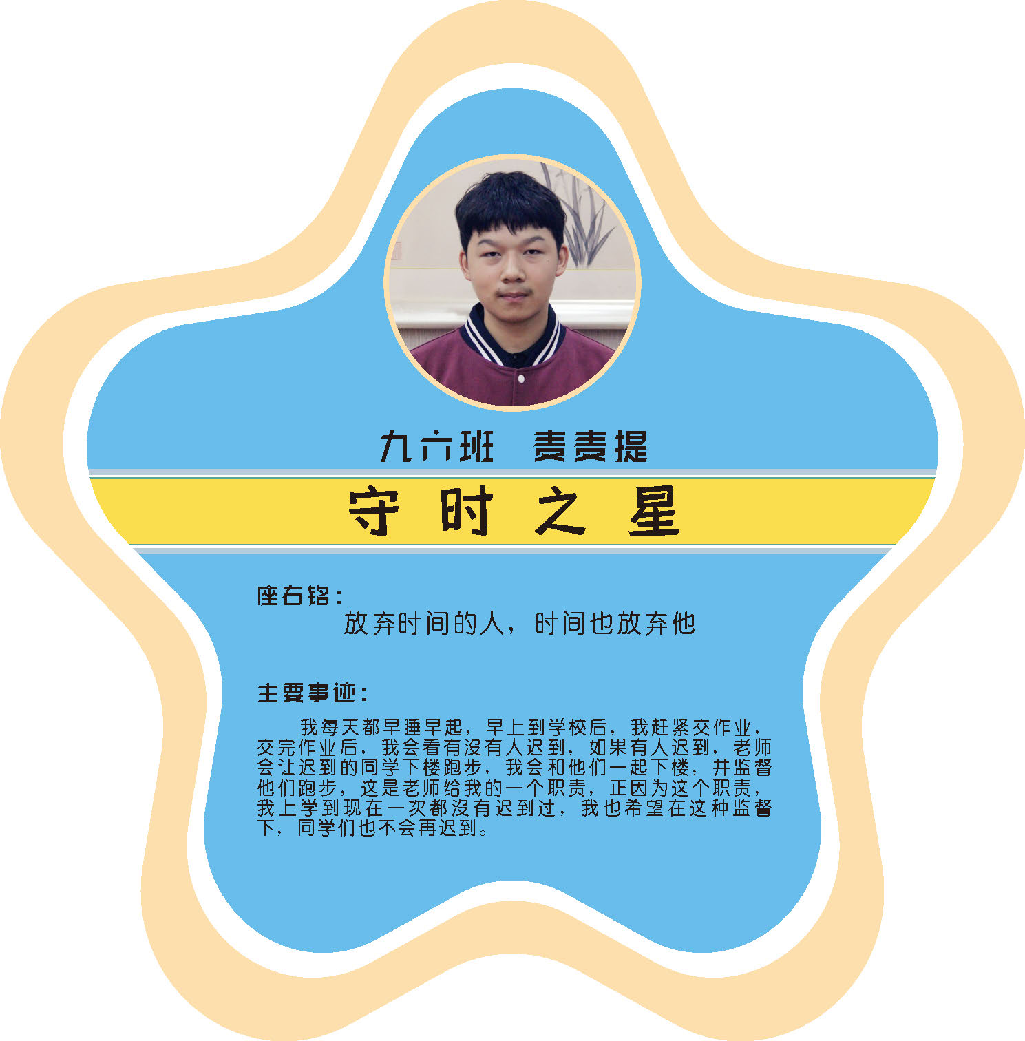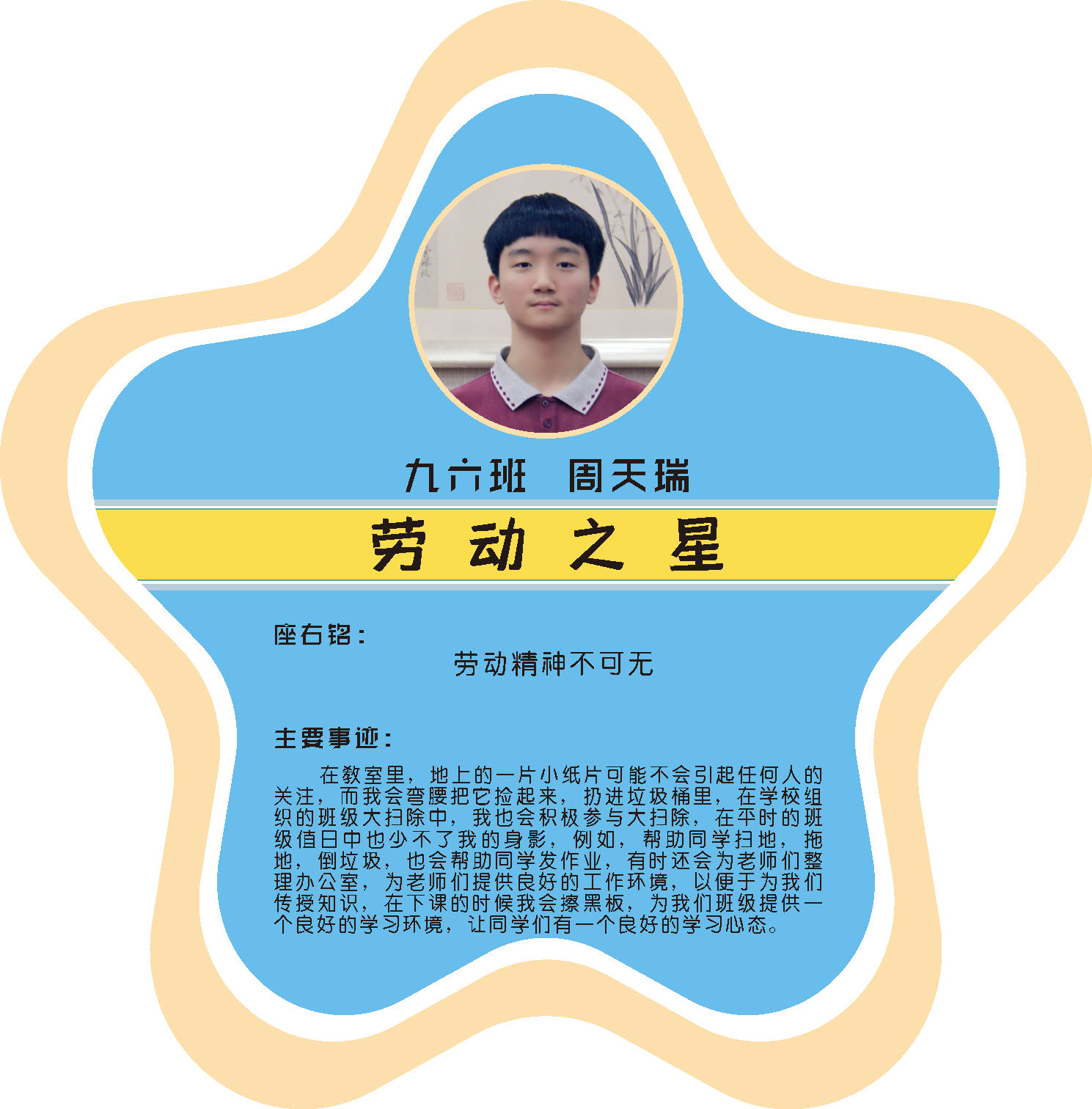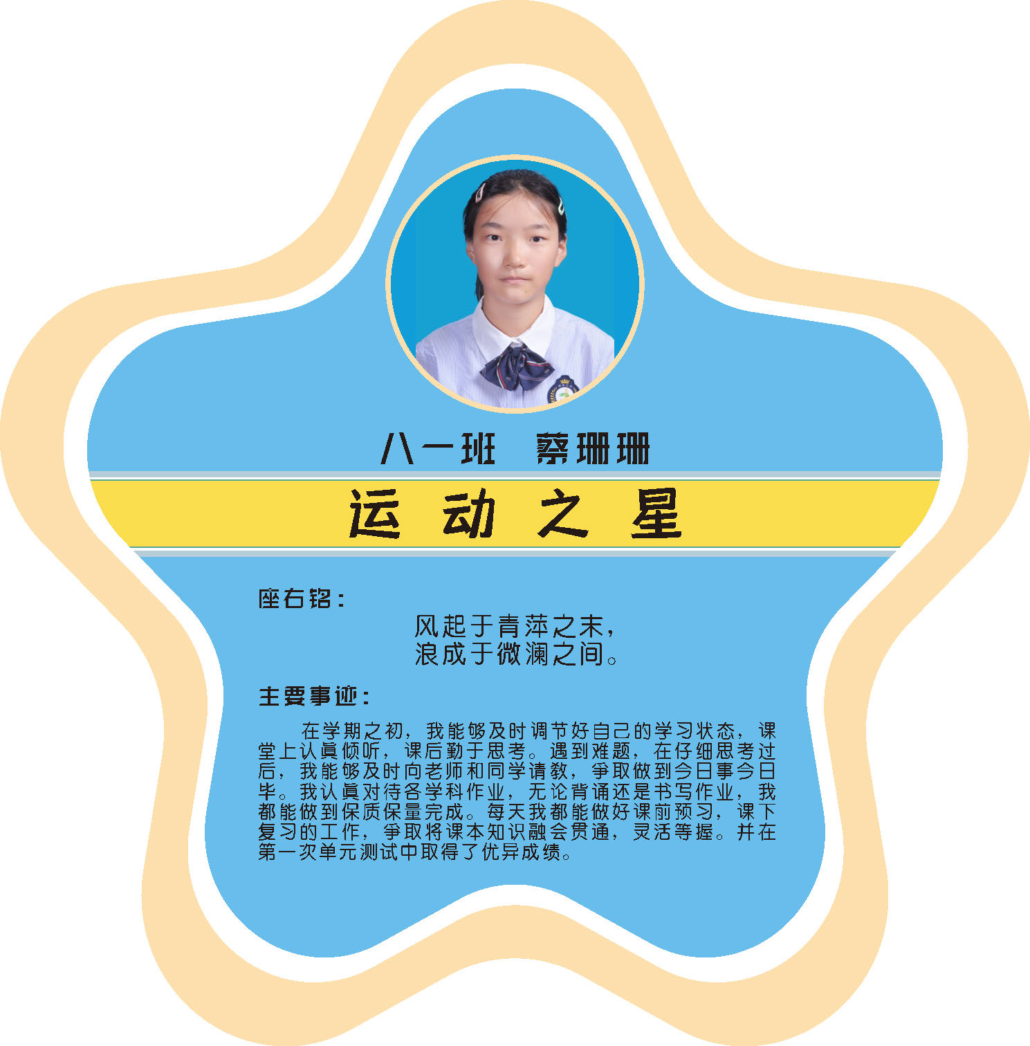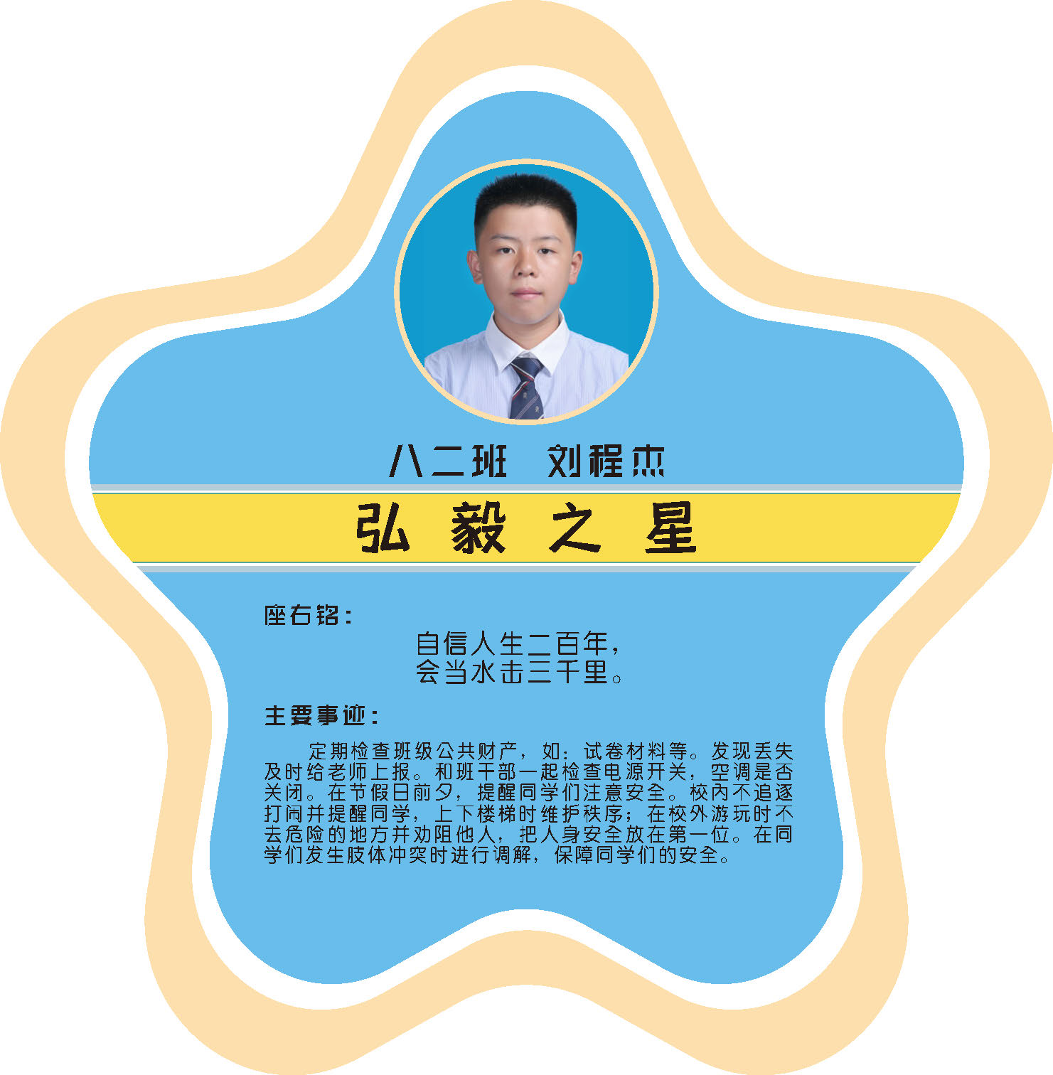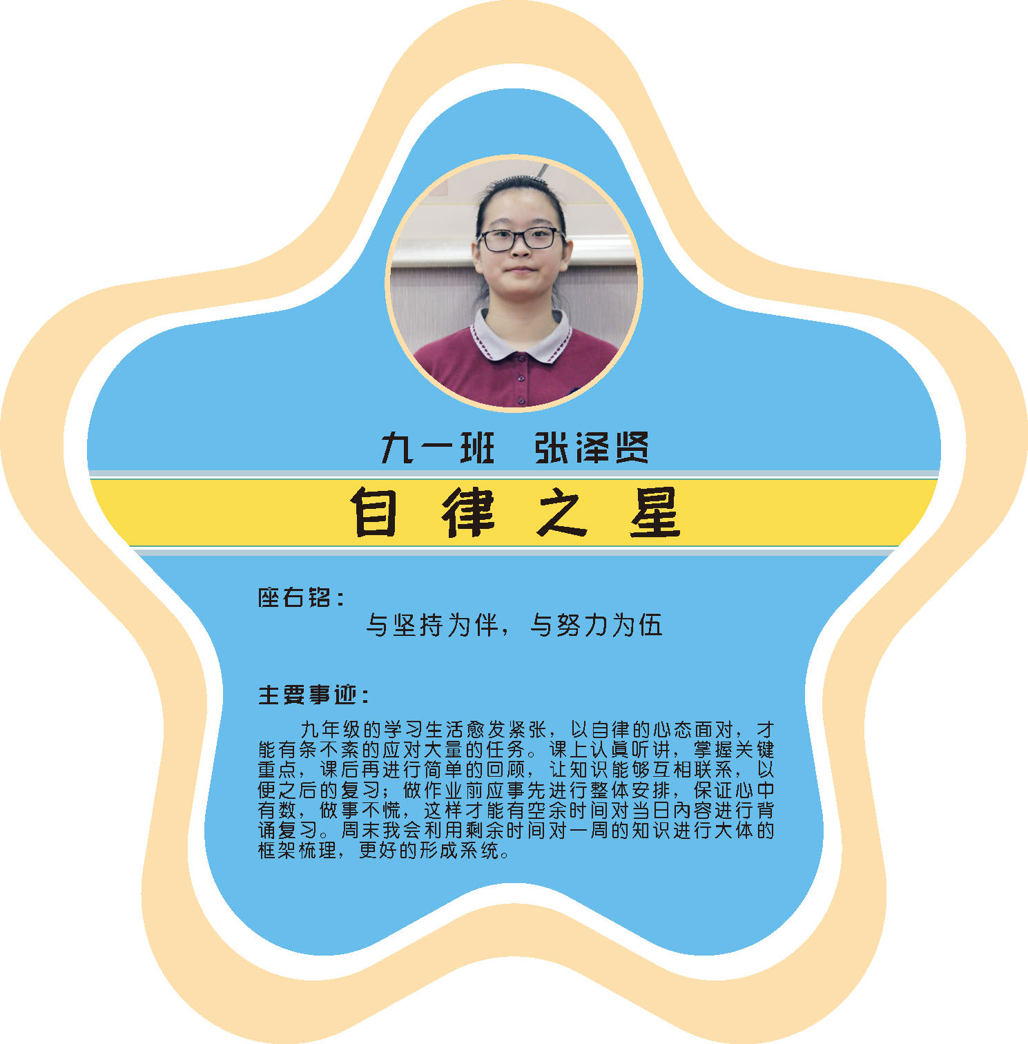 本期校园之星主题为“点亮平凡生活的微光”,他们或许来自不同年级,却同样以行动点亮平凡日常。结合学生日常行为表现,评选出年级之星、学习之星、勤奋之星、管理之星、自律之星、志愿服务之星、文艺之星、劳动之星、纪律之星。这些来自校园各领域的‘微光’,汇聚成榜样的星河,这就是本期校园之星们。