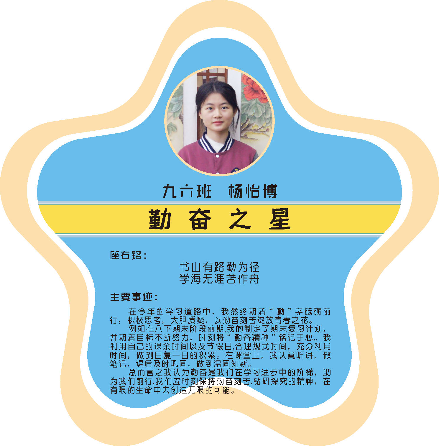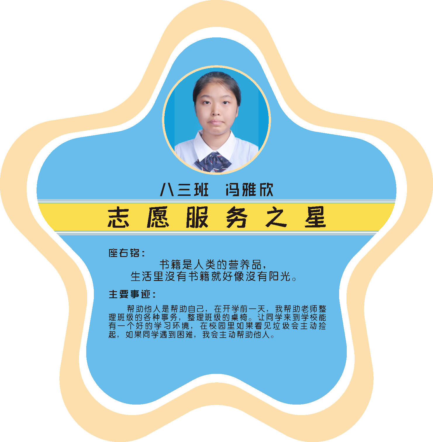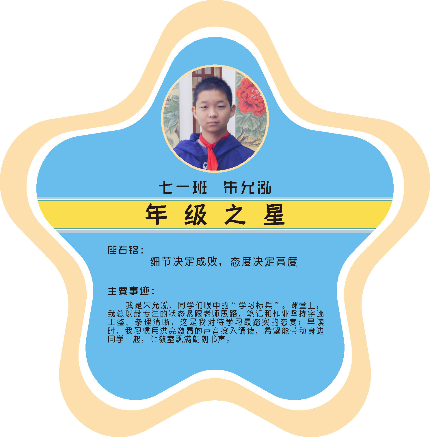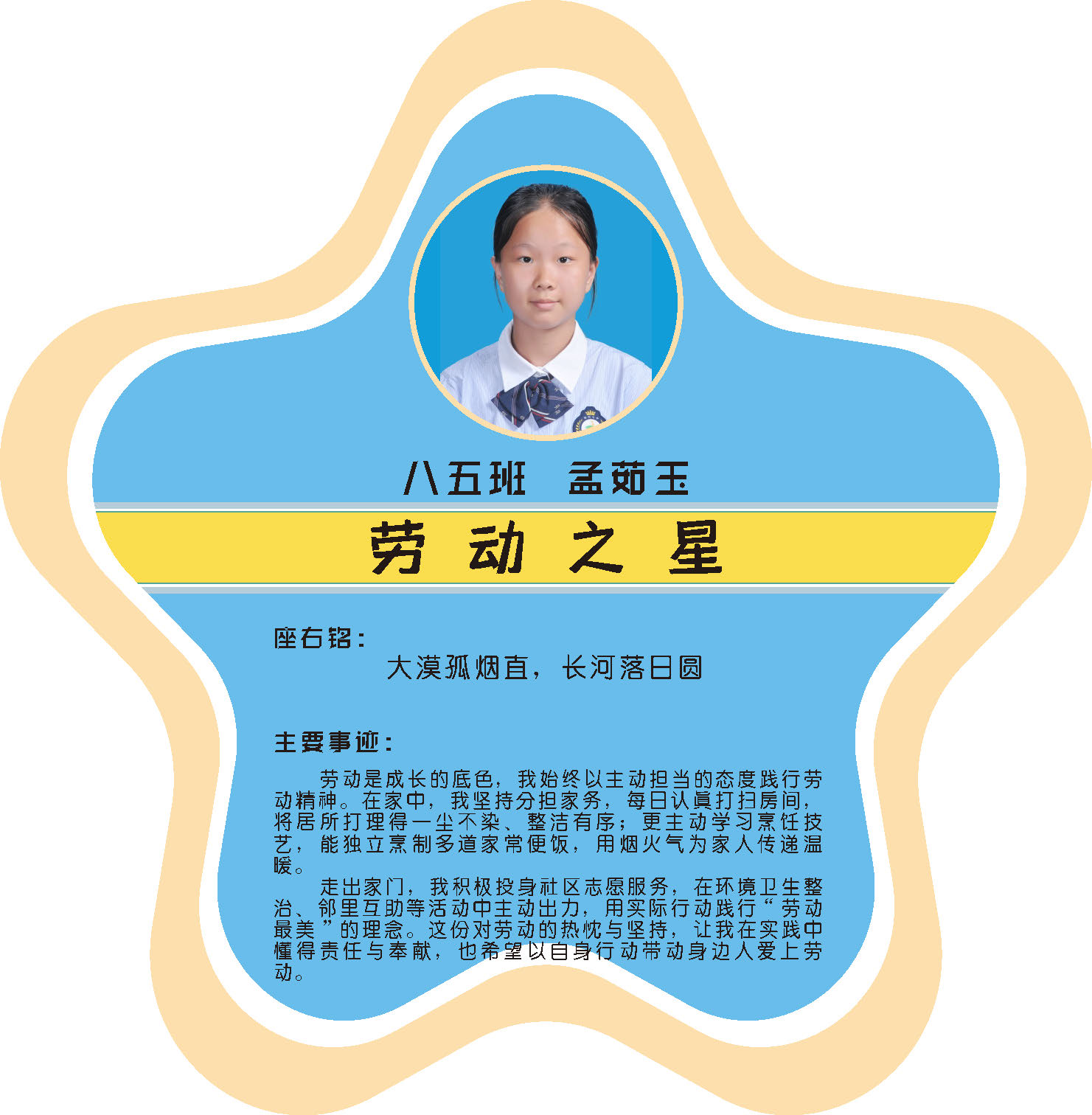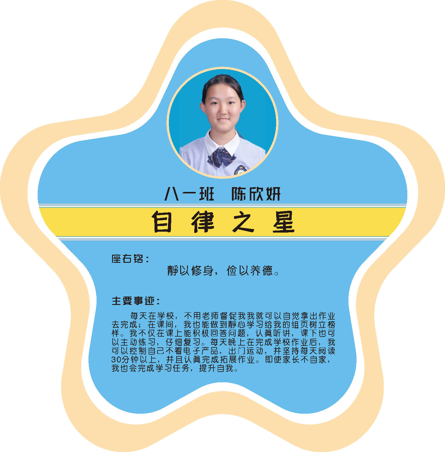 本期校园之星主题为“点亮平凡生活的微光”,他们或许来自不同年级,却同样以行动点亮平凡日常。结合学生日常行为表现,评选出年级之星、学习之星、勤奋之星、管理之星、自律之星、志愿服务之星、文艺之星、劳动之星、纪律之星。这些来自校园各领域的‘微光’,汇聚成榜样的星河,这就是本期校园之星们。