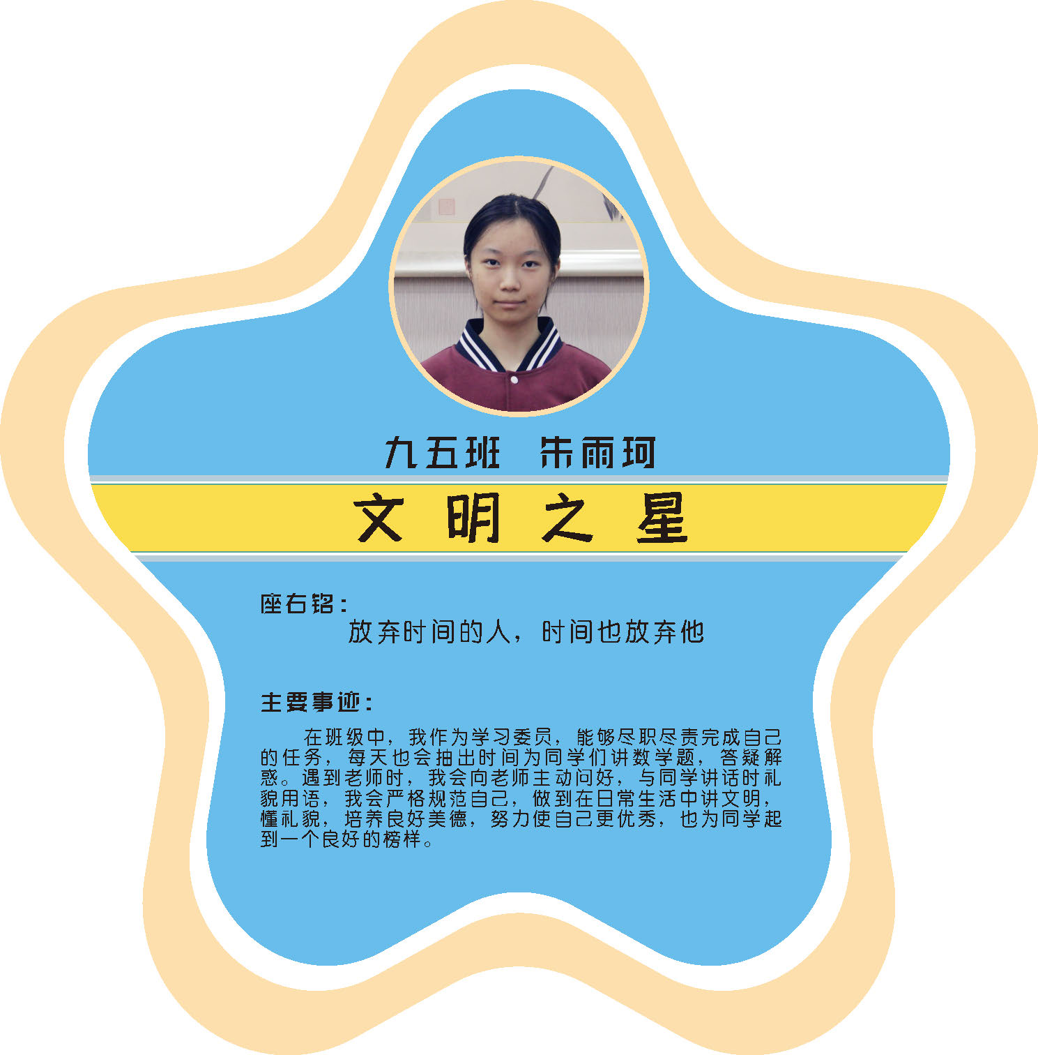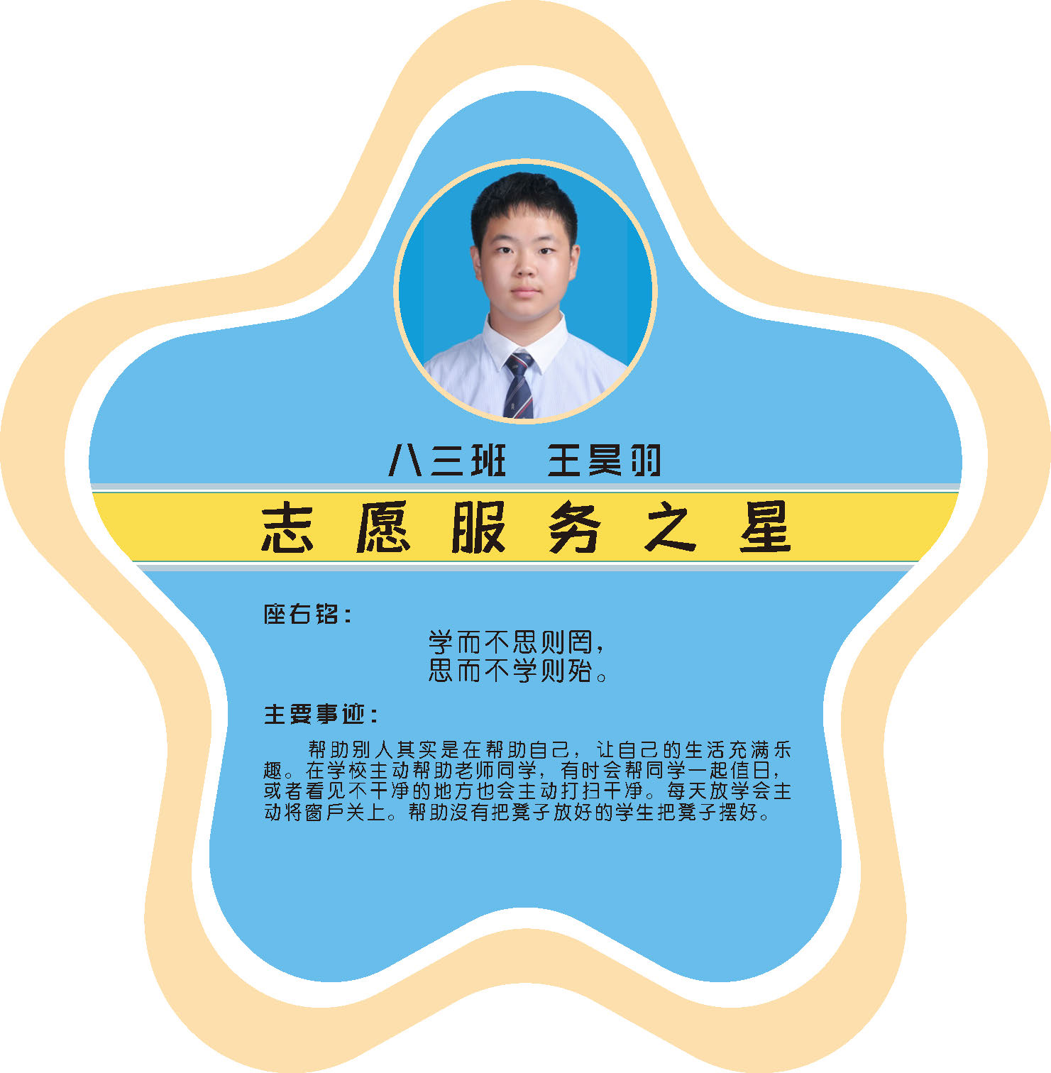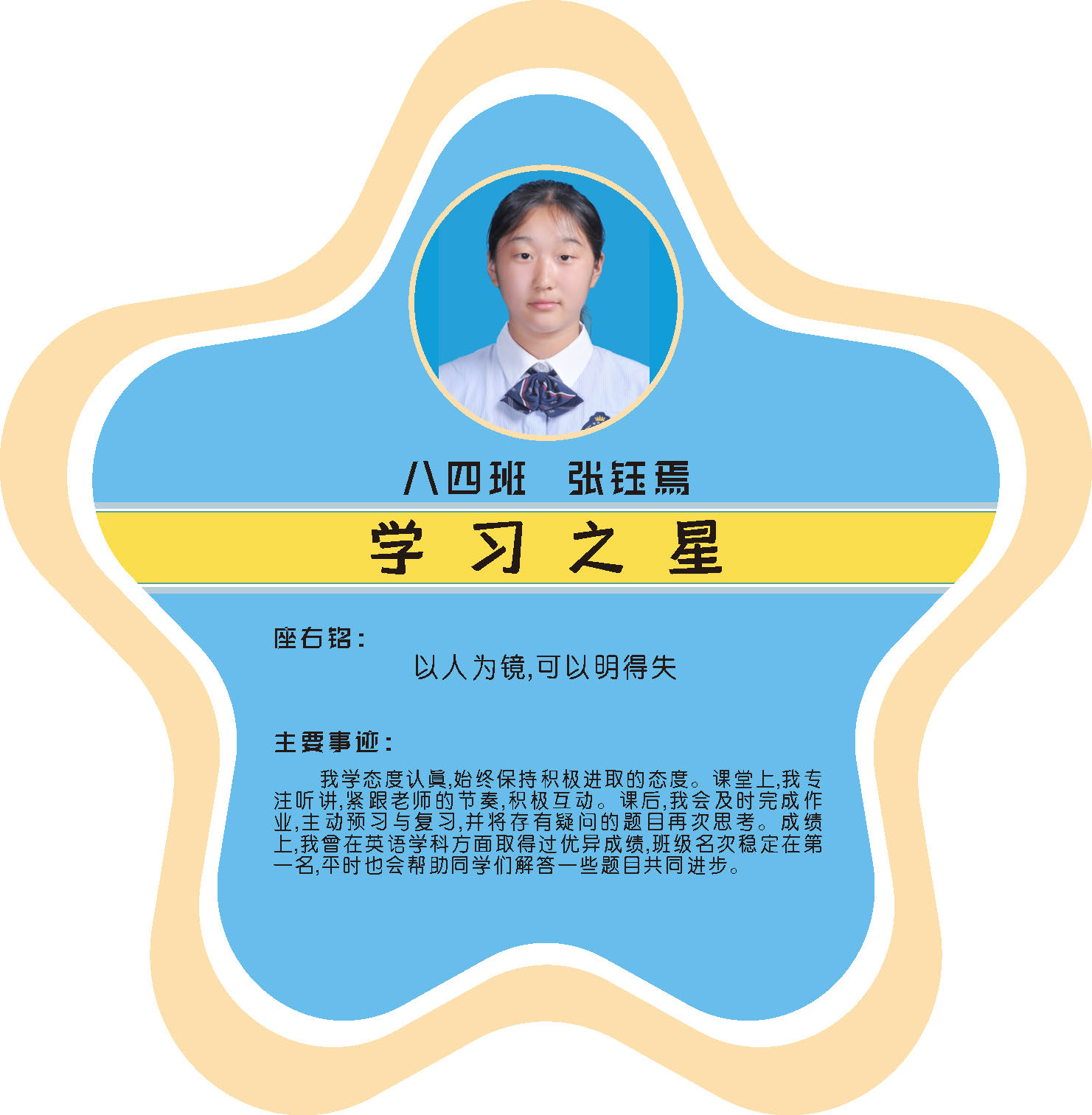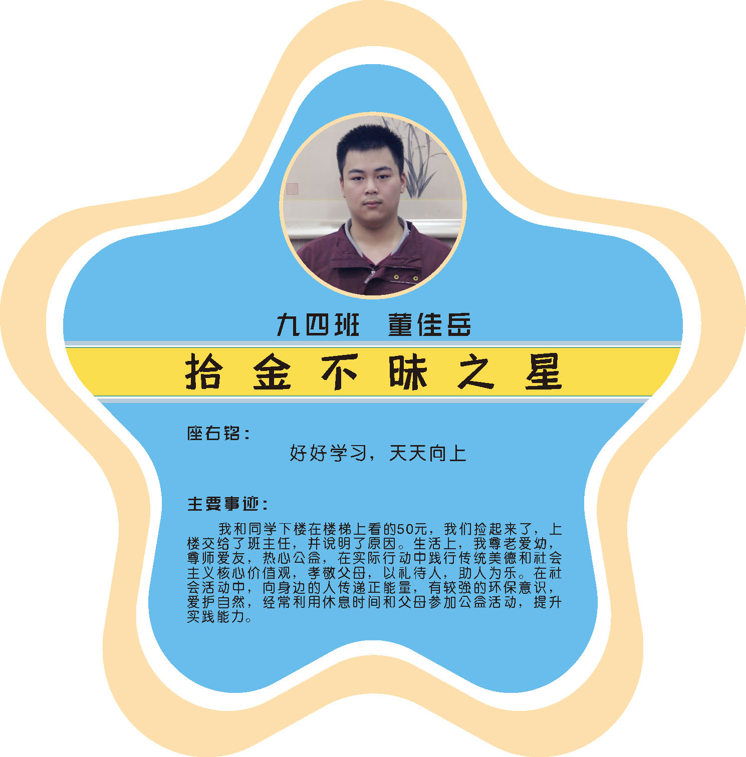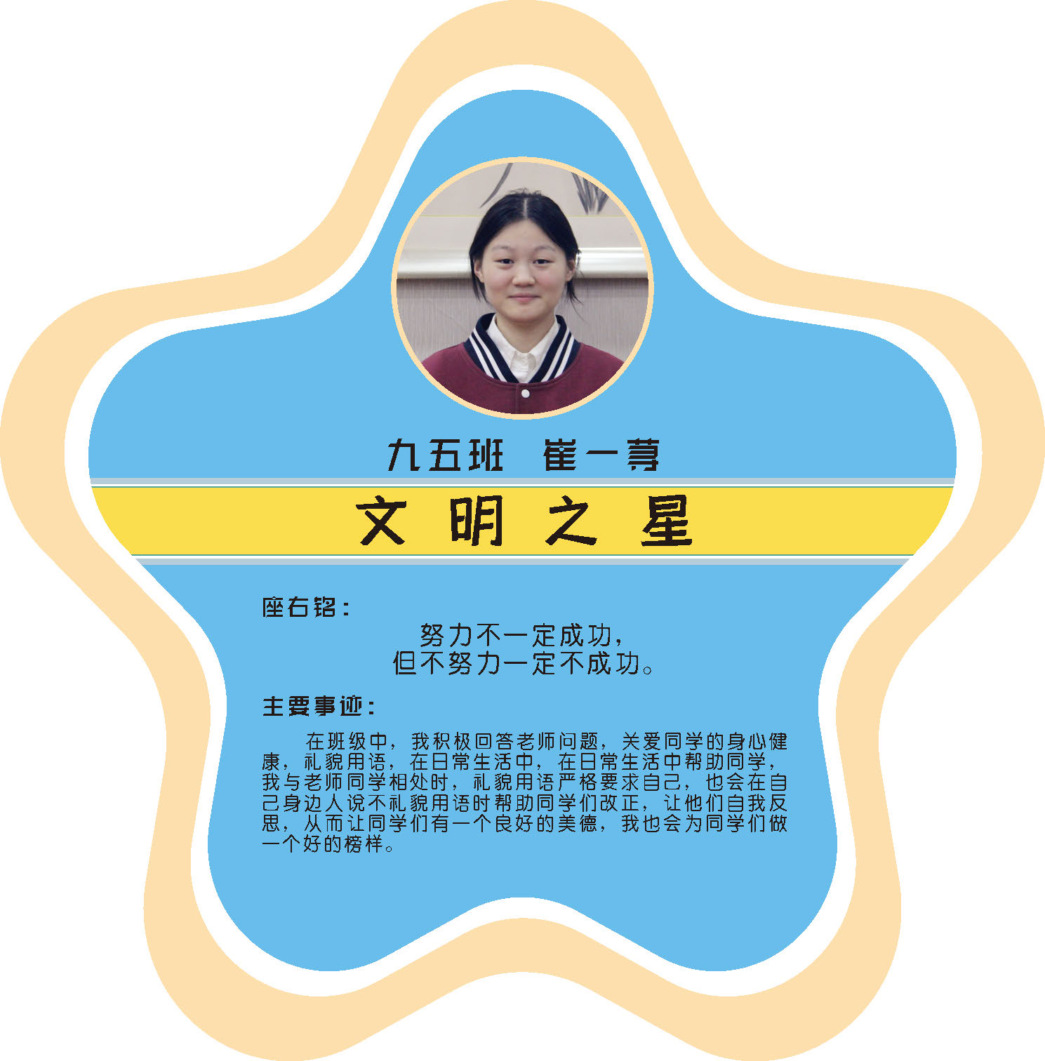 本期校园之星主题为“点亮平凡生活的微光”,他们或许来自不同年级,却同样以行动点亮平凡日常。结合学生日常行为表现,评选出年级之星、学习之星、勤奋之星、管理之星、自律之星、志愿服务之星、文艺之星、劳动之星、纪律之星。这些来自校园各领域的‘微光’,汇聚成榜样的星河,这就是本期校园之星们。