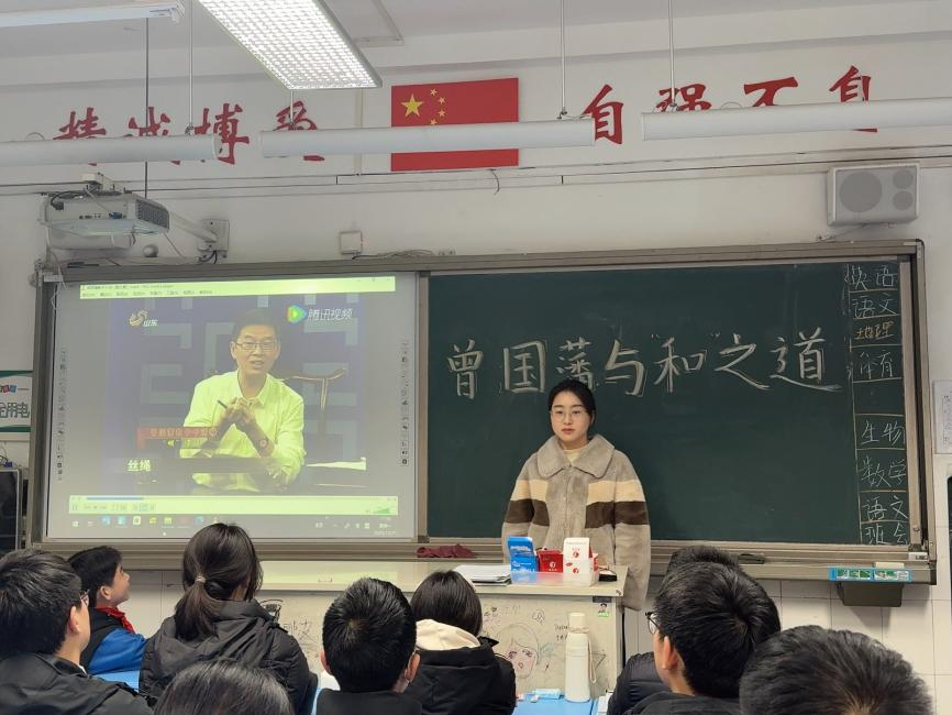 此次活动中,各班精心组织以“曾国藩与‘和‘之道”为主题的班会。班会课上,老师们通过生动讲解与播放视频资料,介绍了曾国藩在家书中如何反复强调“家和则福自生”、“和气致祥”的治家理念。同学们围绕“校园生活中的‘和’”、“我与同伴的和谐相处”、“内心平和的力量”等话题展开热烈讨论。七年(3)班的李明同学分享道:“‘和’不是没有矛盾,而是用包容和理解去化解矛盾。这让我想到与同学讨论问题时,也应心平气和,求同存异。”