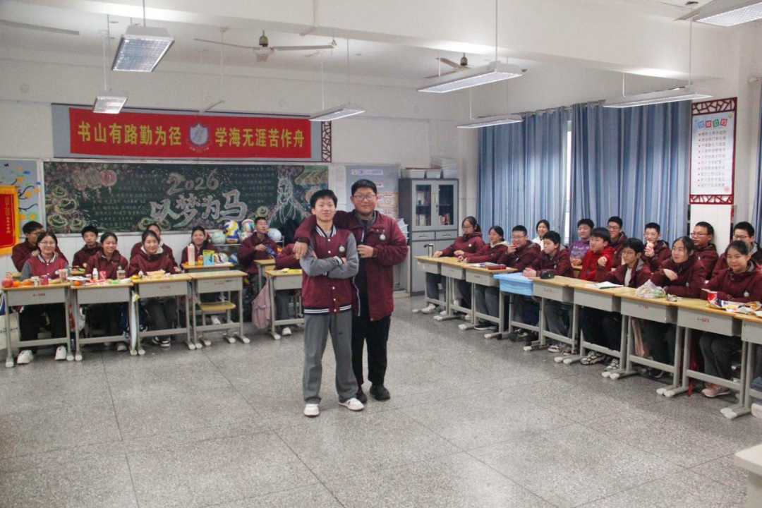 各班主任特别策划的“马年送祝福”环节将气氛推向高潮。老师们走下讲台,为同学们送上写满殷切期望和美好祝愿的“梦想卡片”,鼓励大家在新的一年里,发扬龙马精神,坚定信念,勇往直前。许多班级还播放了家长提前录制的鼓励视频,温情寄语让不少同学热泪盈眶,更添奋进动力。