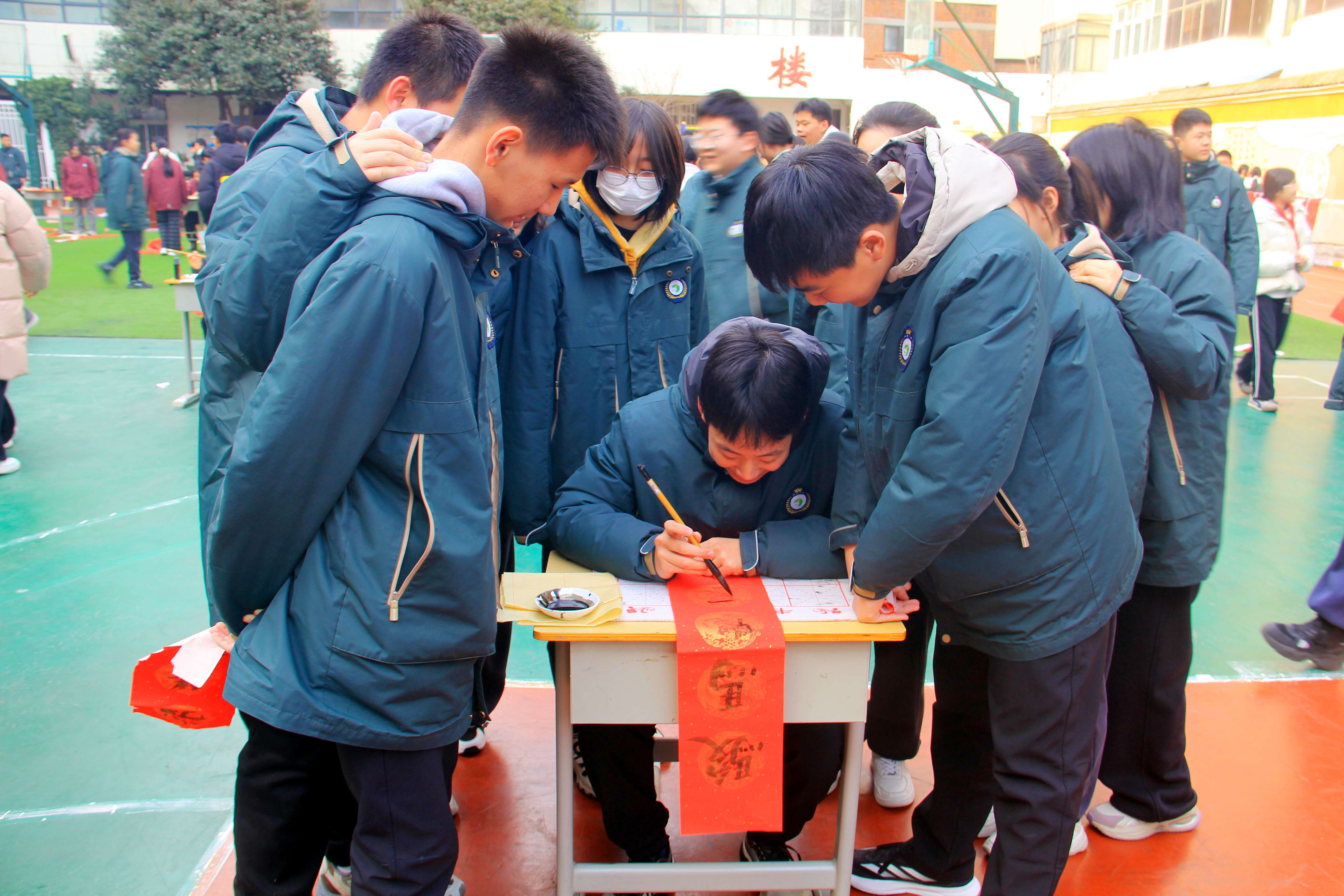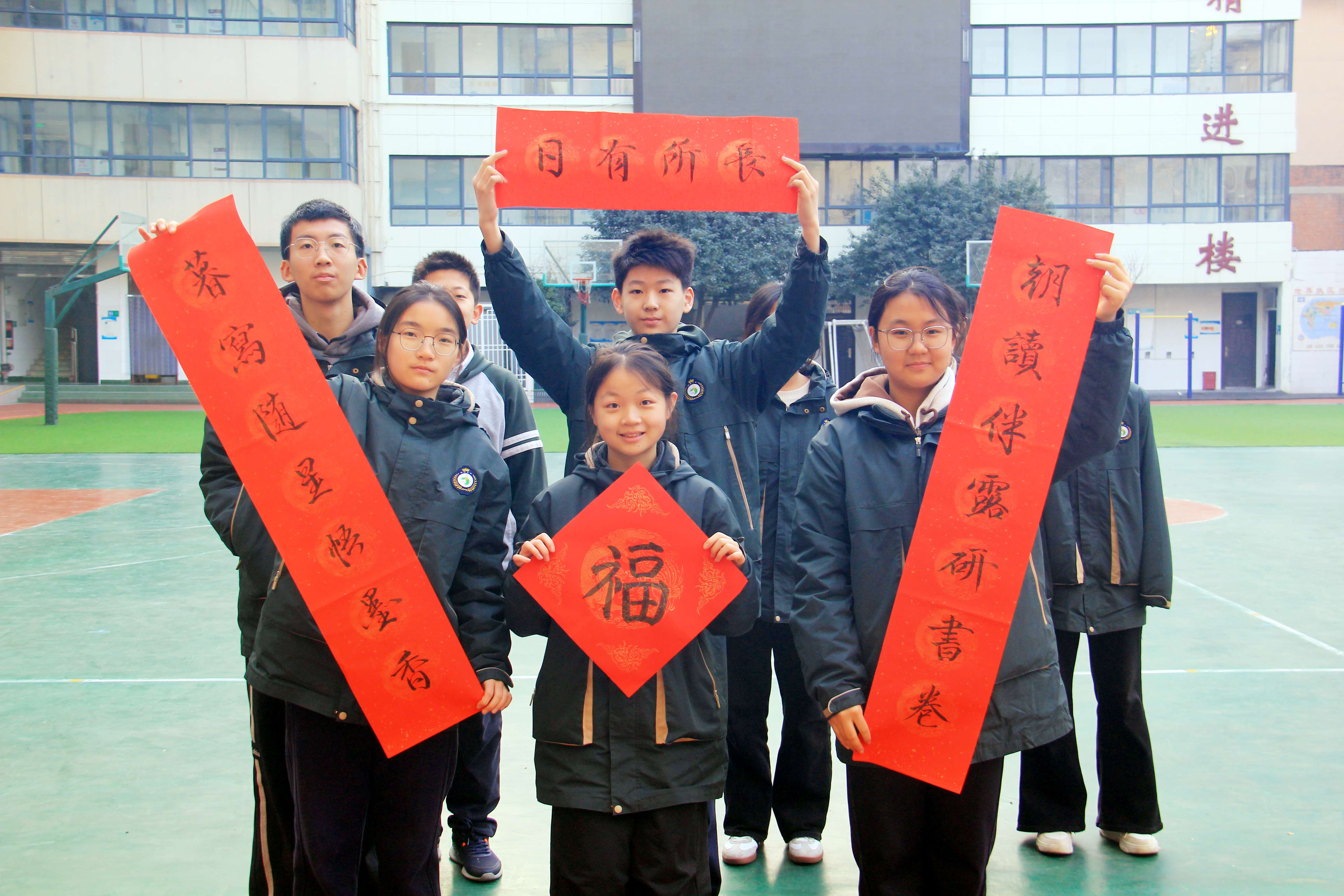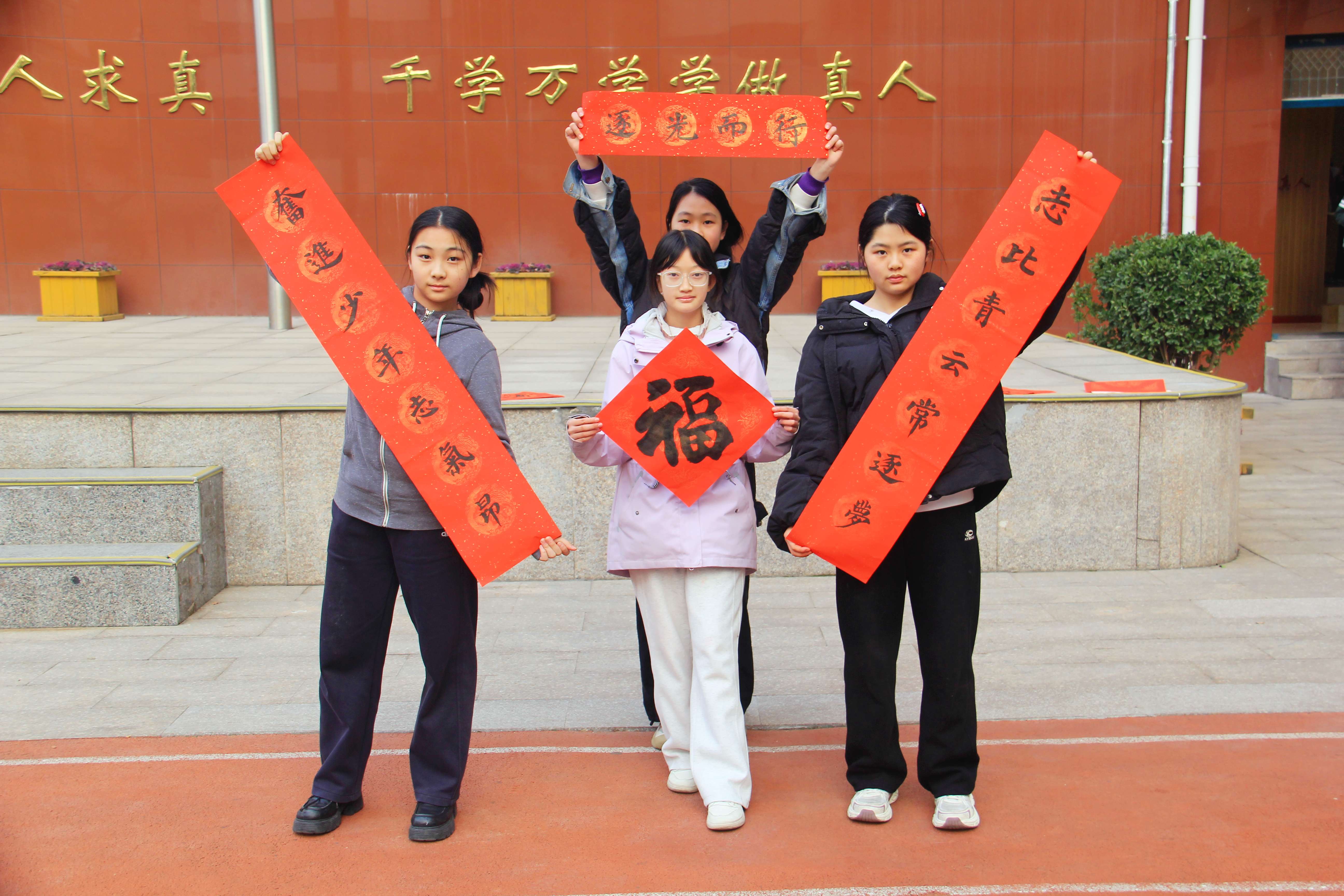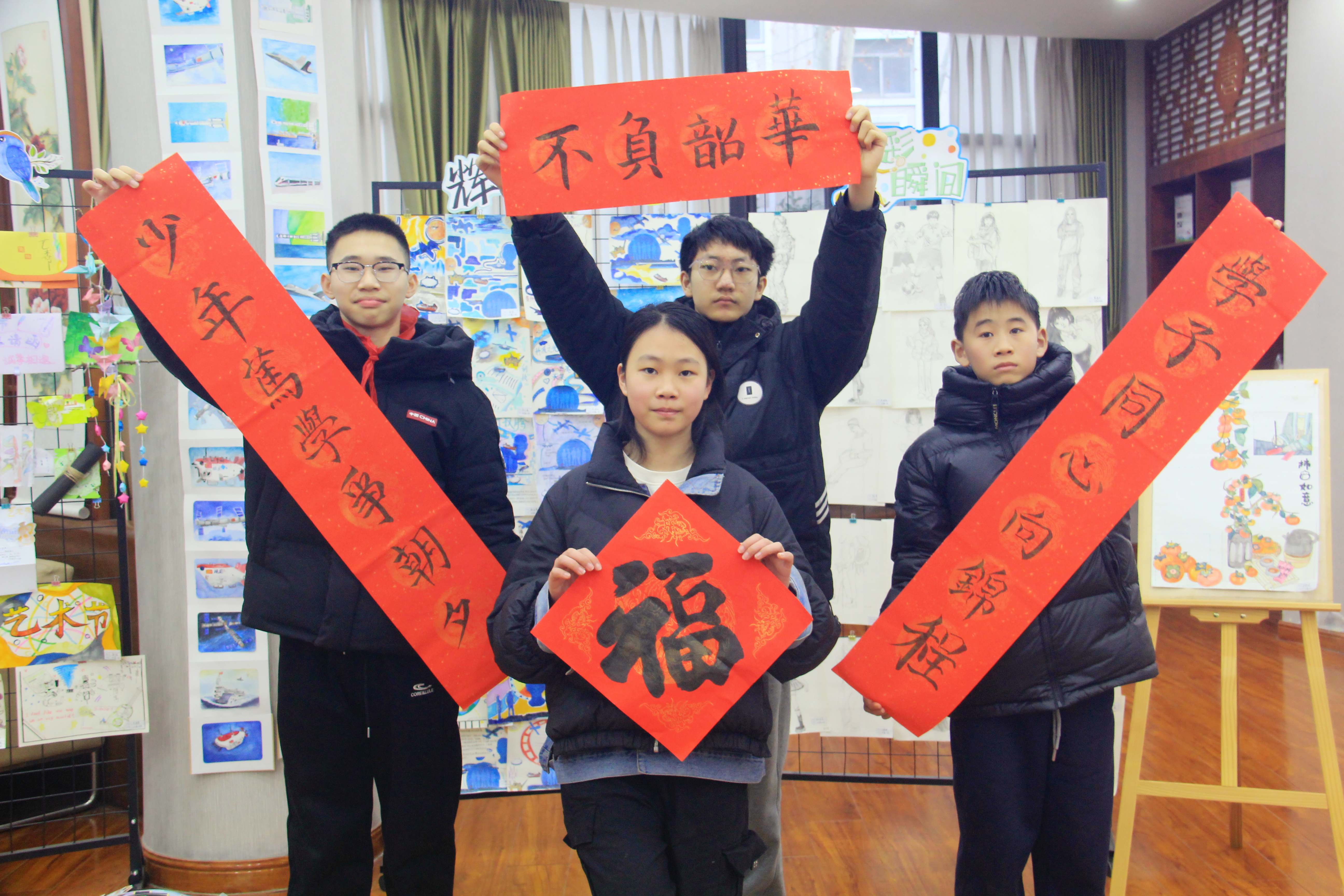 活动前期,学校利用周末组织学生开展春联书写练习。各班结合班级特色与新岁愿景,自主拟定对联内容,并推选优秀作品参与现场展示,让每一副春联都承载着集体的祝福与期盼。