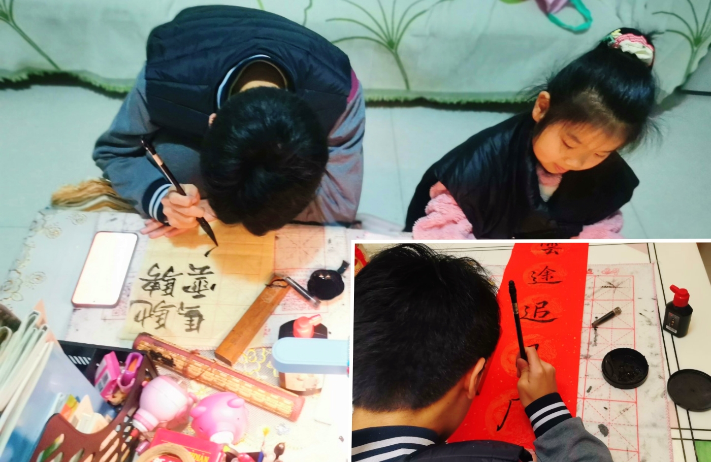 铺展红纸,饱蘸浓墨。不少同学拿起毛笔,练习书法,书写春联,在感受汉字之美的同时,让浓浓年味在指尖流淌。