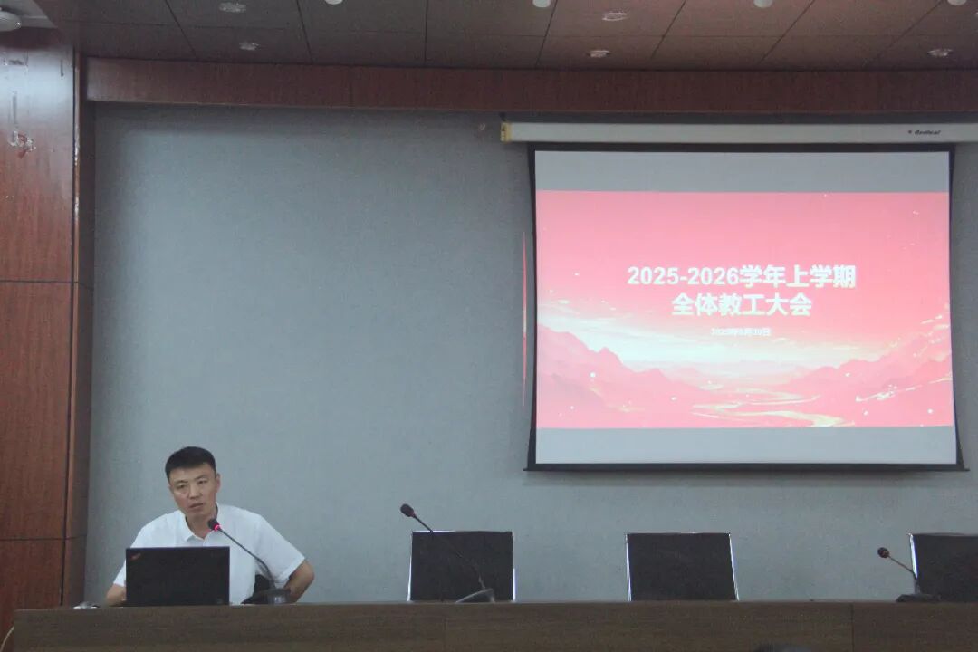 秋阳正好,征途新启。为扎实做好开学前准备,进一步落实学校各项工作的安排部署,确保教育教学有序高效开展,2025 年 8 月 30日上午,郑州市第七初级中学东校区召开2025年秋季学期全体教职工大会。