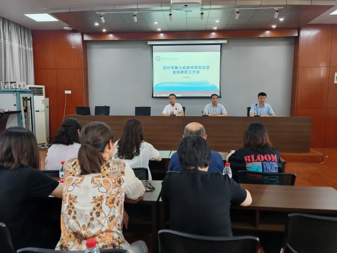 夏木阴阴,学期将至。为总结本学期教育教学成果,部署暑期工作,6月30日下午,郑州市第七初级中学东校区全体教职工齐聚六楼会议室,召开期末教工大会。领导班子及全体教师参加本次会议。