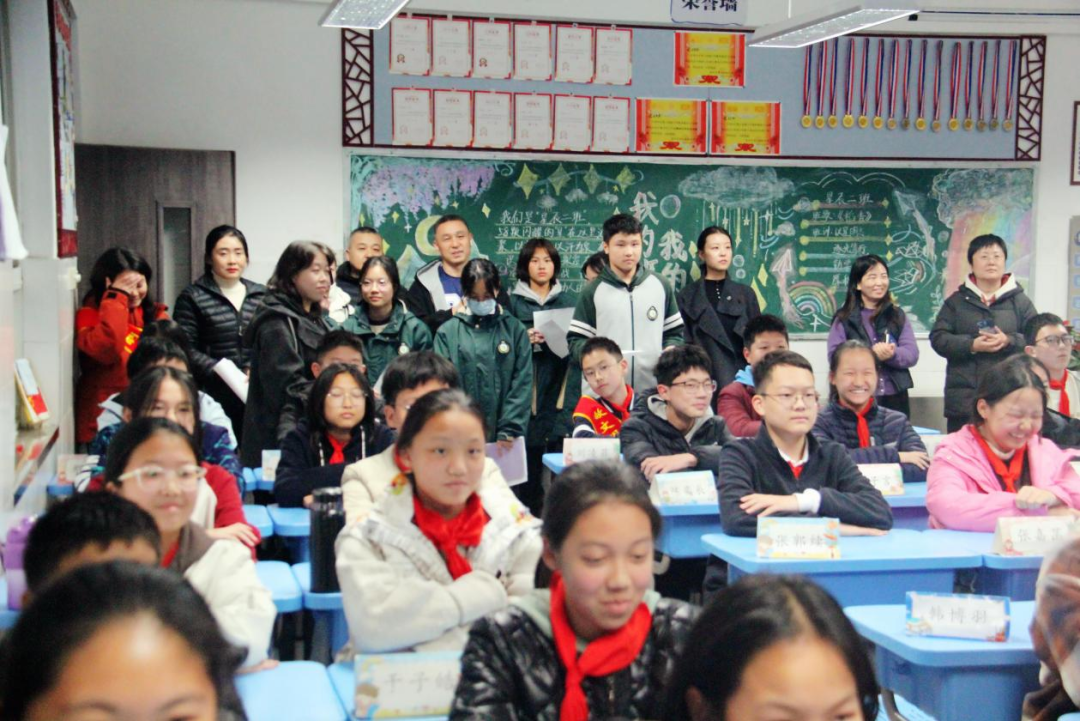 由家长代表、各班级班主任及学生代表共同组成的30余人评审团,深入各班开展观察与现场打分;与此同时,各班精心选拔的班级文化解说员,通过生动讲解、白板成果展示、全班互动展演、班级资料翻阅等多元形式,全面呈现班级文化建设的点滴成果。值得关注的是,各年级结合学生认知特点,明确差异化展示重点:七年级以“建设高效学习小组”为核心,助力新生快速融入集体;八年级以“争创书香班级”为目标,浓厚班级阅读氛围。评比内容涵盖七大维度:学生成长记录袋与成长手册的完善度、教室内外空间的文化利用情况、班级各项公约与制度的制定及执行、能体现班级核心价值观的班名、班徽、班歌、班训设计、教室环境卫生的常态化维护、班级图书柜的建设与借阅管理,以及班级特色文化活动的开展成效。